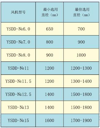 根據(jù)施工情況,廠家推薦使用以下相應(yīng)直徑的風(fēng)管。